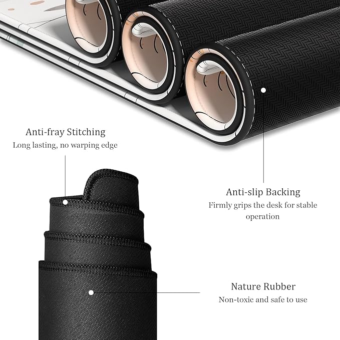 - High Quality Workmanship: Made of thick natural rubber, the xxxl mousepad is soft and comfortable to work on. With individually hand stitched edges, it will not fray, deform or come off in prolonged use. ROHS Certificated, non-toxic and safe to use