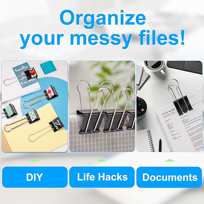 - Binder clips are ideal keeping organized of large stacks of loose paper securely fastened together and keep all foods air closed for office, home, school and crafts
