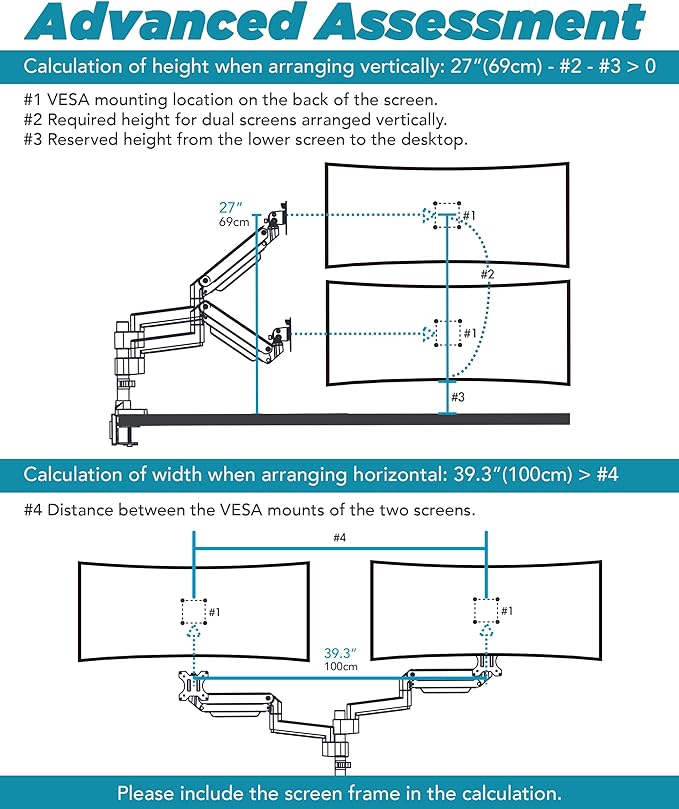 - Modular Extension Arms - The base with extra tall pole has 88 pounds mounting capability, which can be upgraded to a dual monitor mount or triple monitor mount. Dual stacked monitor mount fits up to two 49" ultrawide monitors. Triple monitor stand fits two stacked monitors and a sideways monitor.