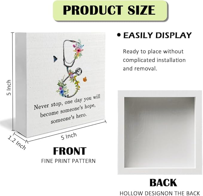 - Material and Size: Measuring approximately 5x5x1.18 inches, this compact wooden box sign is perfect for smaller desks or limited workspaces. Crafted from high-quality wood, it boasts a smooth finish and sturdy construction.
