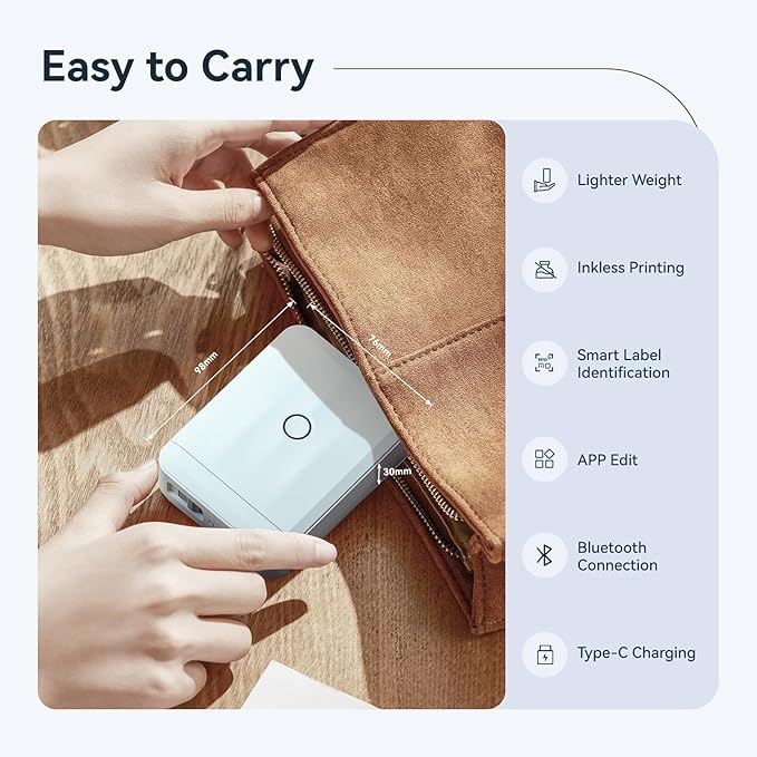 - New Upgrade: NIIMBOT D110 mini bluetooth labeler measuring just 149g. Smaller and smarter than the D110 label maker, experience true and portable mini! Wireless bluetooth label maker can slip into your pocket. The compact and lightweight design makes it easy to carry store, and print labels and stickers anytime, anywhere. Keeps your life and business tidy