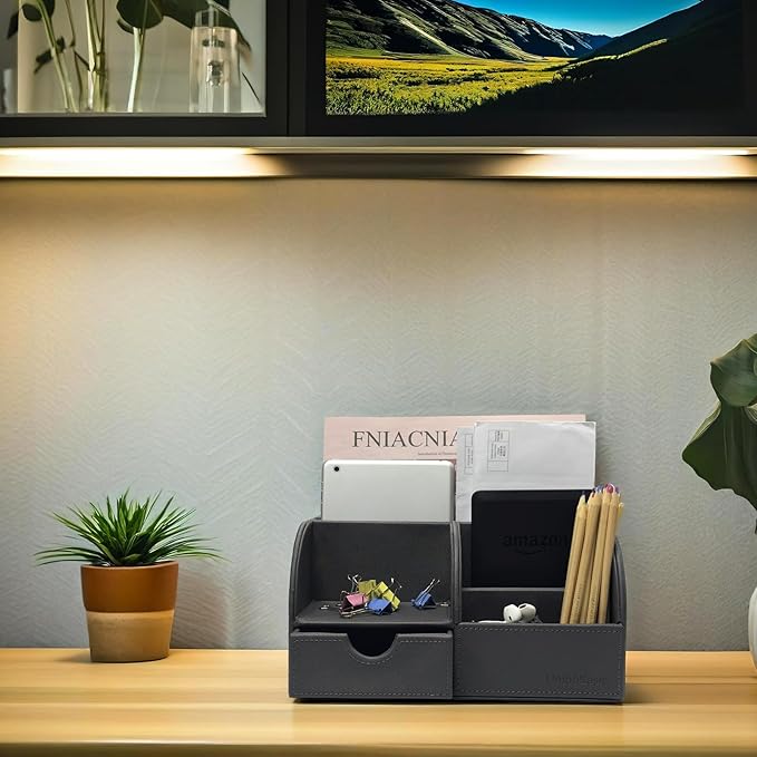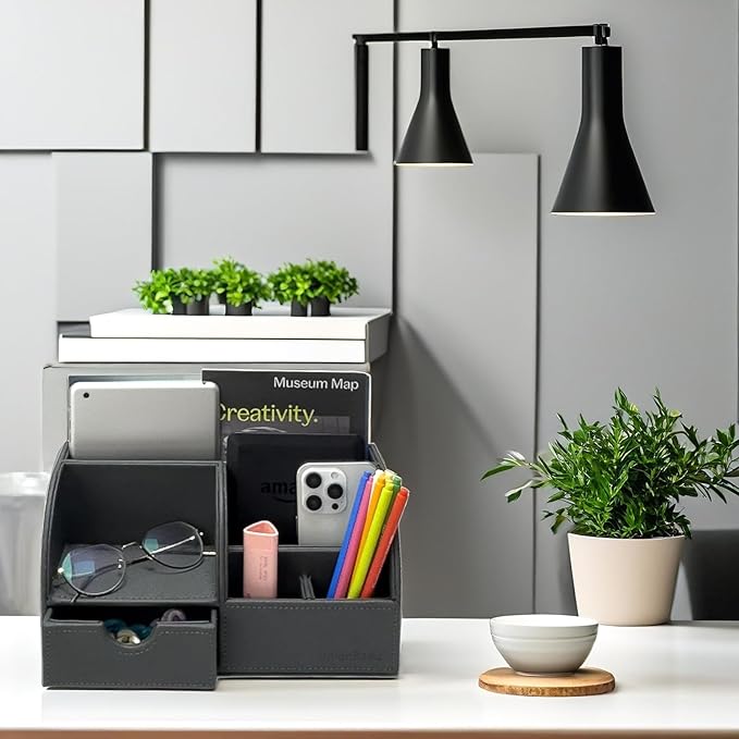 - Efficient Organization: Keep your desk and workspace tidy and organized with this desk organizer that has multiple compartments to store your pens, pencils, phone, remote control, envelopes, cosmetics, scissors and other home or office supplies. With a designated place for everything, you can keep track of all office supplies, and avoid the frustration of misplacing items