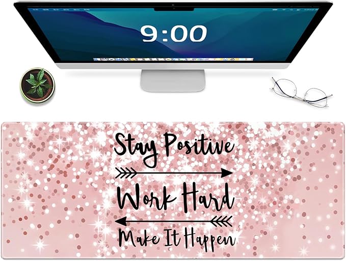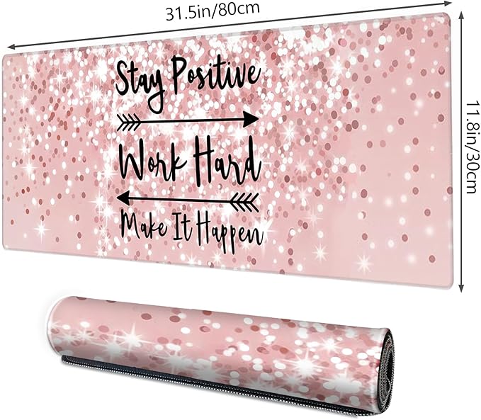 Galdas Gaming Mouse Pad XXL XL Large Long Extended Big Mousepad Non-Slip Rubber Keyboard Mouse Pad with Stitched Edges for Laptop Home Office (31.5x11.8x0.08 Inch) … (Bling Words)