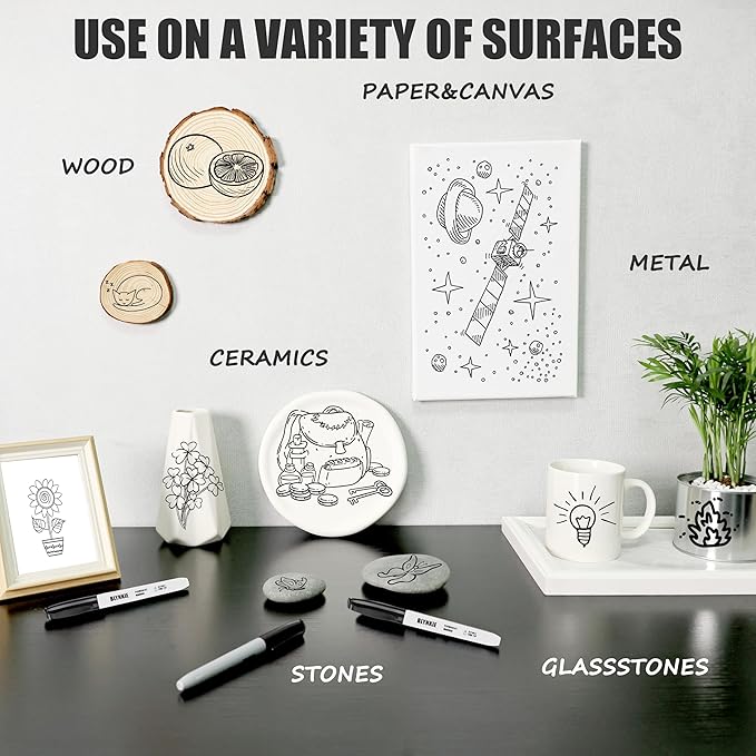 - VERSATILE INK: The archival black ink works on a wide range of surfaces including paper, plastic, wood, metal, glass and more, making these markers ideal for multi-purpose use.