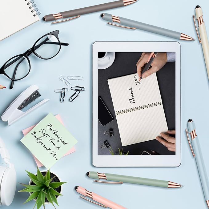 Tenare 12 Pieces 2 in 1 Stylus Metal Ballpoint Pen with Stylus Tip, 1.0 mm Black Ink Ballpoint Pen for Touch Screens(Morandi Color)