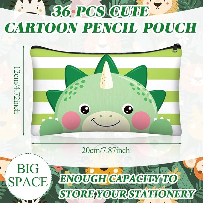 - Eye Catching Popular Design: delight in the playful and appealing cartoon designs; These kawaii cute animal cartoon styles bulk pencil bags include (but are not limited to) comical representations of a bee, lion, unicorn, shark, and dinosaur