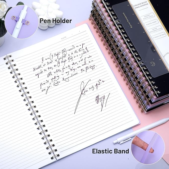 - A4 Lined Spiral Notebook -- The cover of Yoment notebook is made of sturdy, waterproof material that perfectly protects the inner pages of spiral notebook for long-lasting durability. Large spiral notebook size is 8.5 x 11, full size for many occasions. Some people believe that "No design is the best design", the solid color cover and the gold spiral make the spiral journal simple and good-looking.