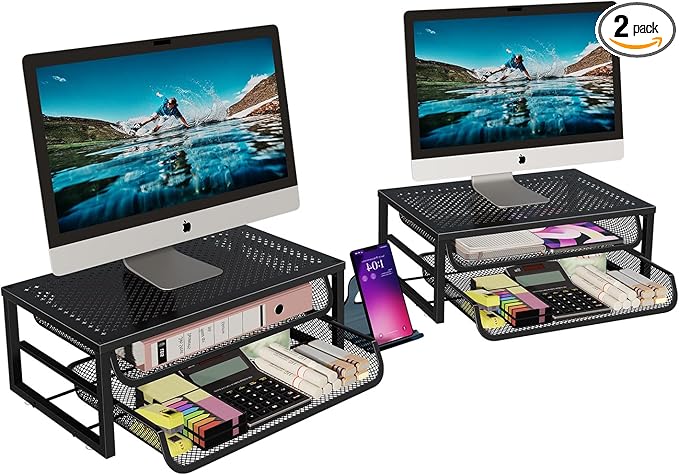 - Multi Functional: It can be divided into 2 shelves, the mesh desk organizer can hold a computer as a monitor riser for desk. The sliding trays can store various office supplies such as pens, erasers, scissors, staplers, etc, perfect for school, bookshelf, home, and more.