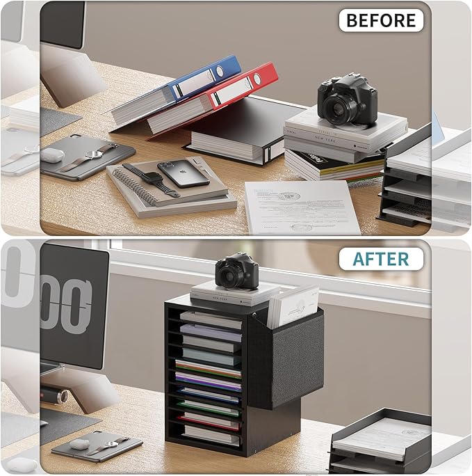 - Flexible and Customizable Storage: Our wood file organizer can accommodate over 600 A4 paper sheets in each compartment. Adjust or remove shelves to create space for taller items, tailoring the layout to suit your specific needs