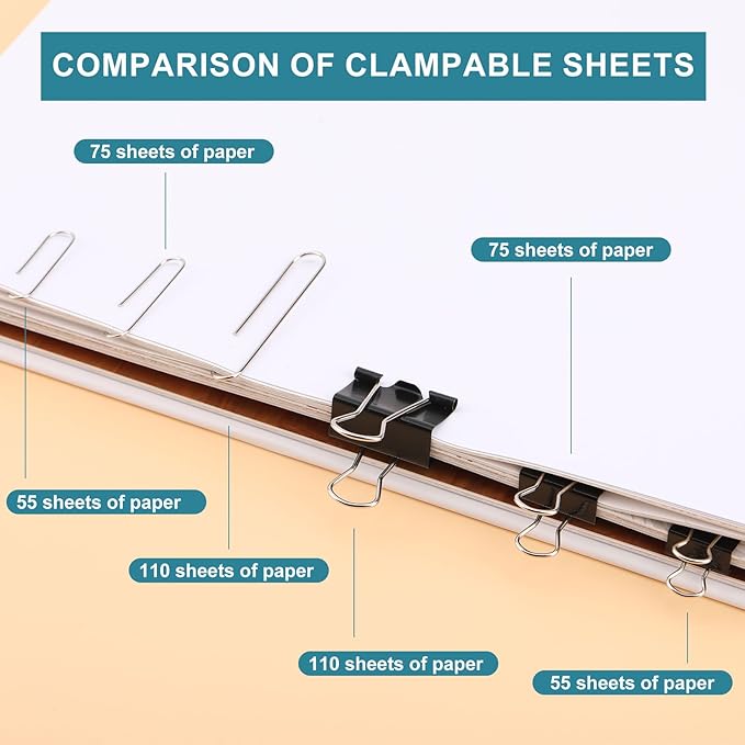 - EFFECTIVE ORGANIZATION: Both paper clips and binder clips are invaluable tools for maintaining a well-organized collection of documents, papers, and notes. With their reliable grip, they guarantee that your papers remain neatly arranged, safeguarding them from being misplaced or jumbled together.