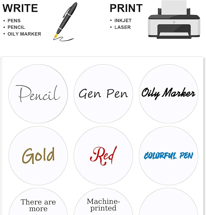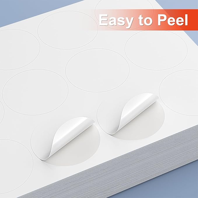 Methdic 2.5" Diameter High Visibility Printable Round Labels,Matte White,360 Customizable Blank Stickers