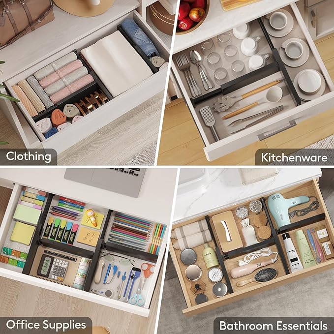 - Expandable & Adjustable: With a width of 0.8", a height of 4", and an adjustable length ranging from 11" to 17.5", our drawer dividers can be easily fitted into most drawers and cabinets, offering the convenient solution to organize your items and maintain tidy drawers at all times.