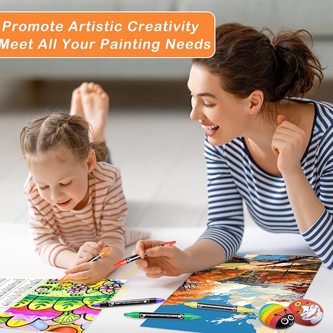 - VERSATILE DUAL TIP: Our acrylic paint markers come with a unique dual-tip design. One end features a 1mm fine tip for outlining and detailing intricate designs, while the other end has a 0.5-5mm broad tip for large areas of painting and coloring, allowing you to create different strokes by changing the brush pressure, saving the trouble of changing nibs, and bringing more convenience to your creation, meet the different needs of professionals and amateurs.