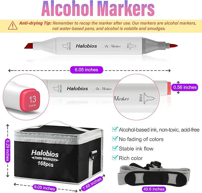 - ✐ 168 VIBRANT COLORS: With 168 colors, the marker set ensures that whether you're looking for subtle shades or bold and vibrant hues, it has you covered, infusing your creativity with a rainbow of colors for brilliantly colorful creations!