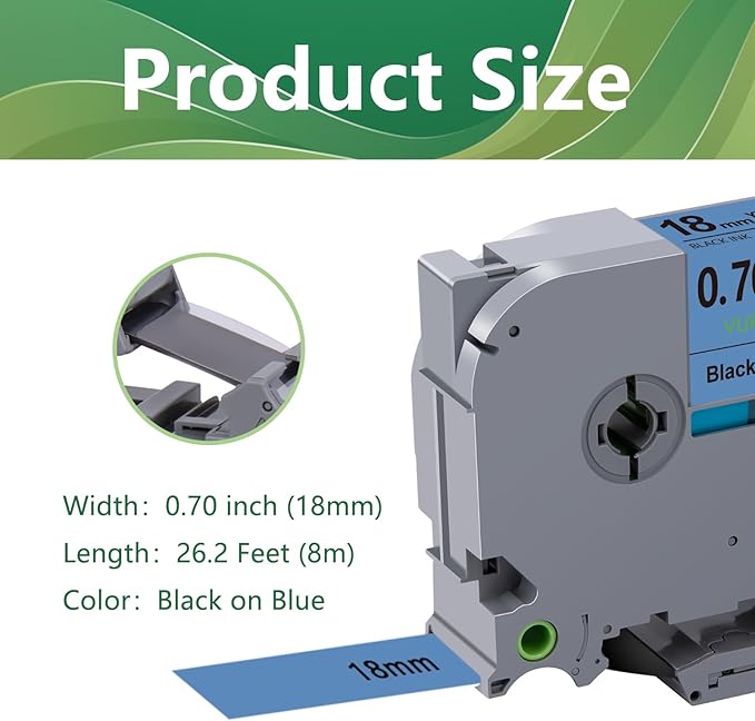 - Product Size: Width: 18mm 0.7 inch, Length: 26.2 feet (8m) for each 18mm 0.7 inch laminated blue label tape