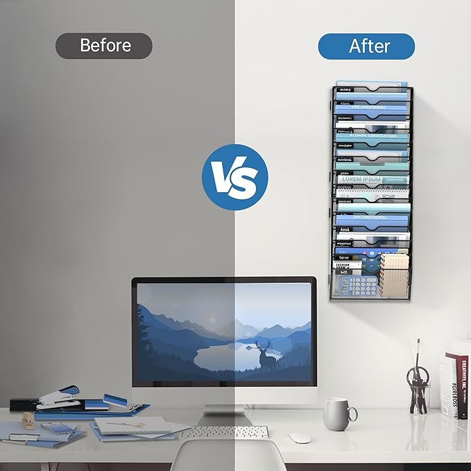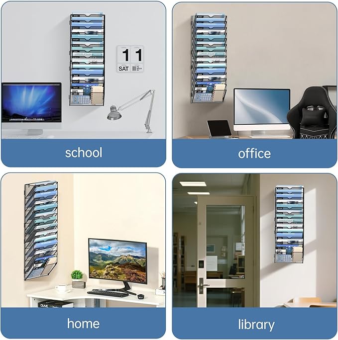 - [Space Saving] This 14-tier mail organizer will be your savior by taking full advantage of vertical space on the wall or over the door. It is a great way to keep your desktop tidy and give you a more comfortable workplace no matter in office, home, classroom or dorm.