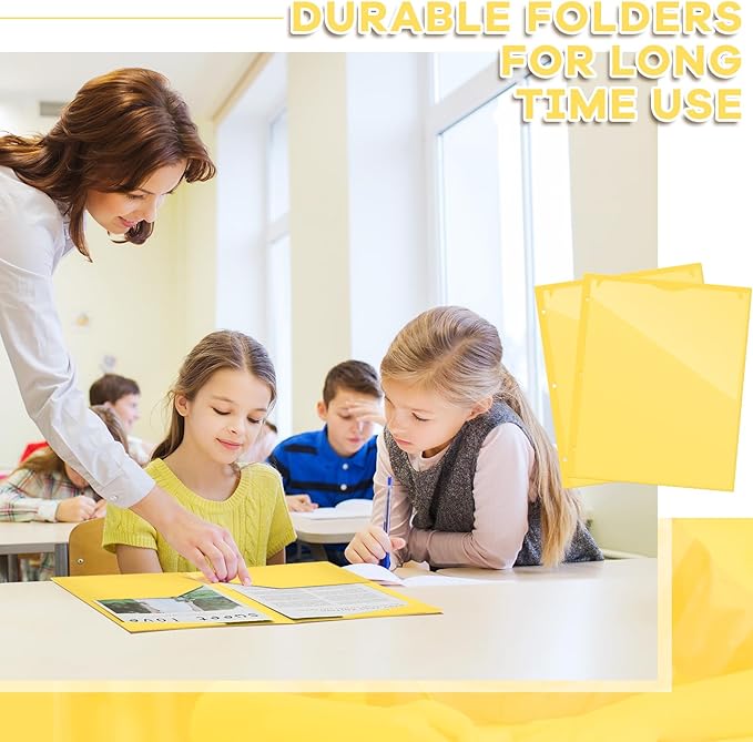 Henoyso 60 Pcs 2 Pocket Plastic Folders with Clear Front Pocket 3 Hole Punched File Folder Letter Size Take Home Documents Holder for Paper Holder Office Business Back to School Supply (Yellow)