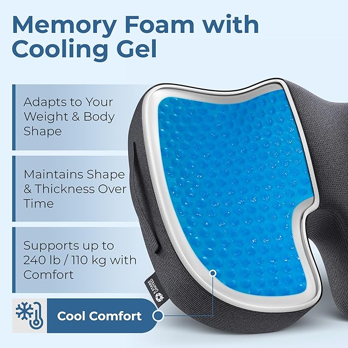 5 STARS UNITED Seat Cushion for Tailbone Pain Relief ā Memory Foam Cushion for Coccyx, Hemorrhoid, Sciatica & Post-Surgery Recovery ā Wheelchair, Car, Desk, Gaming & Office Chairs, Arctic Black