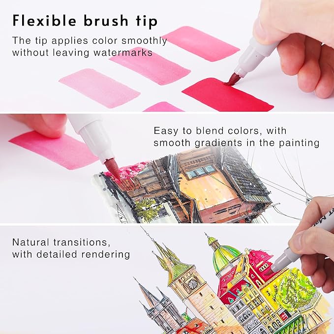 - [ Seamless Blending and Color Mixing ] - High-quality alcohol marker ink blends seamlessly to achieve beautiful coloring effects, Smooth color mixing and blending, Our alcohol-based ink dries quickly, ensuring that your art is always clean, crisp, smudge-free, and ready to display.