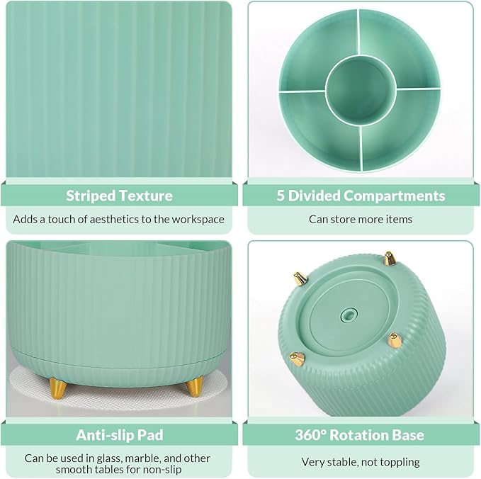 SKYDUE 360 Degree Rotating Desk Organizer, Dual-Purpose Pencil Pen Holder for Desktop, Rotating Desk Pen Organizer with 5 Slots, Pencil Cup for School, Home, Office Supplies (Bean Green)