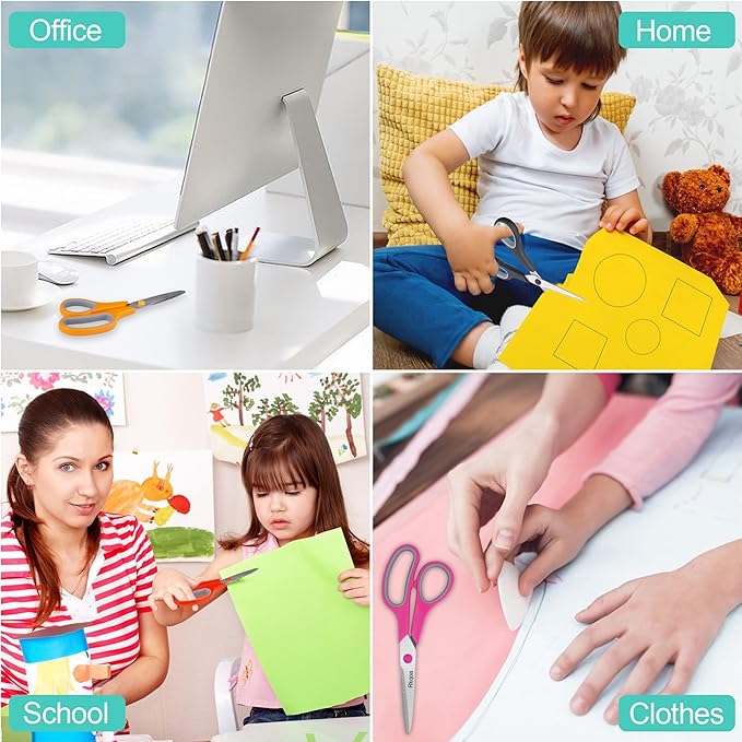 - Multipurpose/ Vibrant 6 Scissors: Classic Colors: Pink. Can Be Used In Different Places. Ease to holding, work perfectly for their crafting for many different tasks. Comfortable to use in: Office, School, House Household, High/Middle School Students Teacher, Sewing Fabric Arts Crafts DIY, laundry room, bathroom, garage, kitchen, Stocking Stuffers or other occasions supplies.