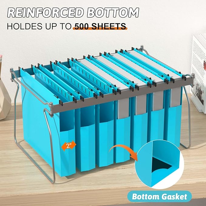 - 【EXTRA CAPACITY & REINFORCED BOTTOM】: The extra capacity hanging file folders buttom 2" expansion design for up to 500 files at once; includes black plastic plate-reinforced insert for extra support on bottom panel.