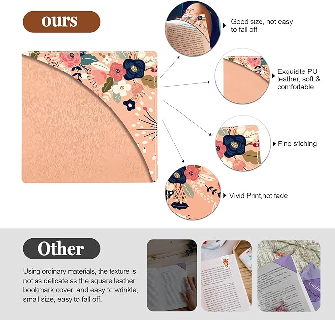 - Water Resistant and Long Lasting:Corner bookmarks are made of soft leather, waterproof,sturdy and lightweight, not easy to fade or break, not easy to break or deform, smooth surface and comfortable to touch, and does not hurt the book. It can protect the corners of the book,and can be applied for a long time. The clever corner design that allows them to be more securely attached to the book,They can hold one page or multiple pages with ease,not easy to fall off