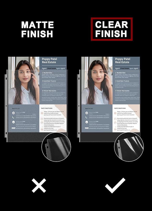 - Document Protection Enhanced: Each clear pocket sleeves includes 100 sheet protector units measuring 9.25 x 11.25 inches, specifically designed to comfortably hold 8.5 x 11 inch letter-size paper. These binder sheet protectors are capable of accommodating up to 2 sheets per pocket.With clear binder sheet protectors, visibility and access to your documents.Additionally, our sheet protectors heavy duty design ensures durability. The versatile binder sleeves fit seamlessly into standard 3-ring binders.