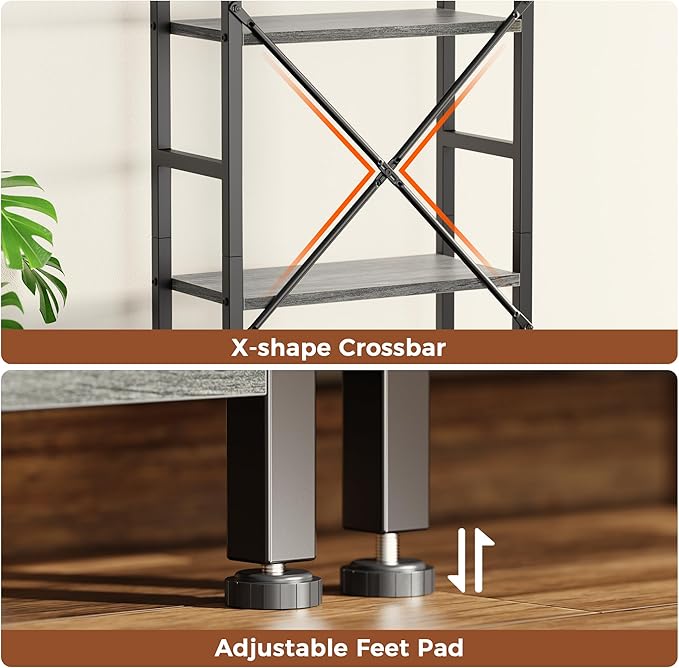 - 【STABLE AND DURABLE】Crafted from steel frame and particle board, this wide bookshelf has high stability and long service life, each shelf can hold up to 70 lbs.The bookshelves come with anti-tilt brackets so you can fasten them to the wall for support