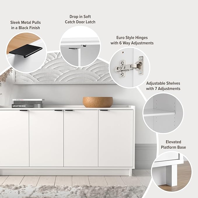 - FUNCTIONAL AND STYLISH: Buffet cabinet with storage features a modern design with clean lines and metal drawer pulls, all in a pure white finish
