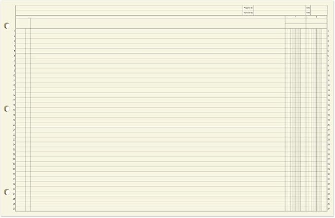- Three hole punched for binders: There is a three hole punch on the side of these 17" x 11" loose leaf sheets so that you can put these sheets into any three ring binder used in your business. This loose leaf sheet format is the perfect way to integrate your bookkeeping sheets into any organization strategy you already use. The paper is archival quality and acid-free, keeping your financials safe for years.
