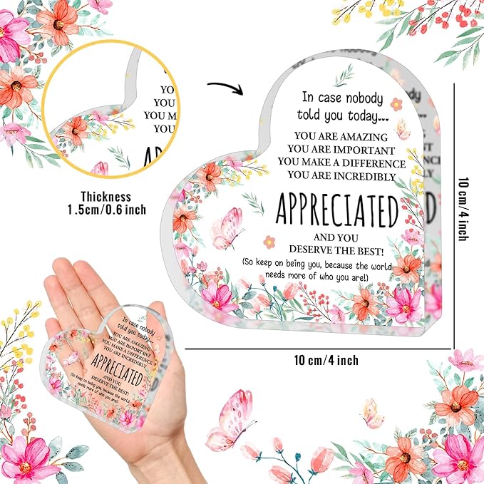 - Inspirational Design: The clear acrylic heart is adorned with motivational words and designs, making it a thoughtful and inspiring gift for coworkers, bosses, and friends.