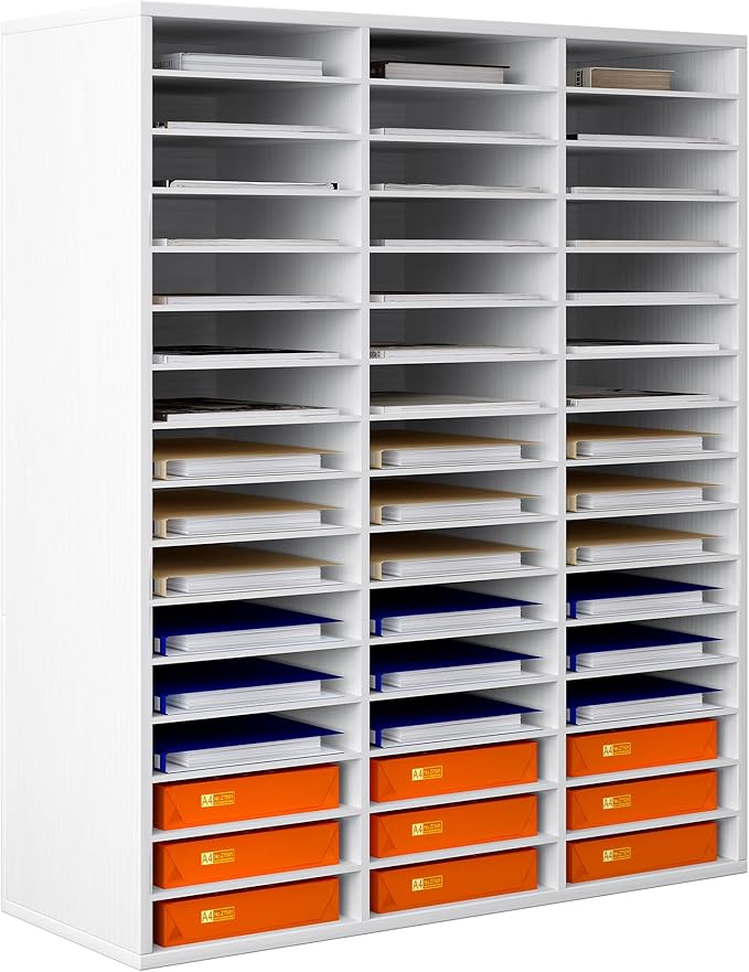 - ▶Amazing Storage Capacity and Space-saving. The literature organizer has 16 Layers and 3 columns, a total of 48 slots. It can help you sort, store and organize literature, magazines, comic books, files, student assignments, binders, catalogs, diaries, papers and documents on your desk, counter or floor quickly and easily and get you valuable workspace back