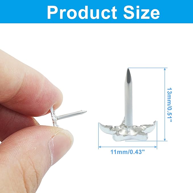 - WHAT WILL YOU GET - You will get 150 pcs metal upholstery tacks, the overall height is 13mm/0.51inch, diameter is 11mm/0.43inch. 150 pcs metal thumb tacks fully meets your needs. They are small size, light weight, and very easy to carry