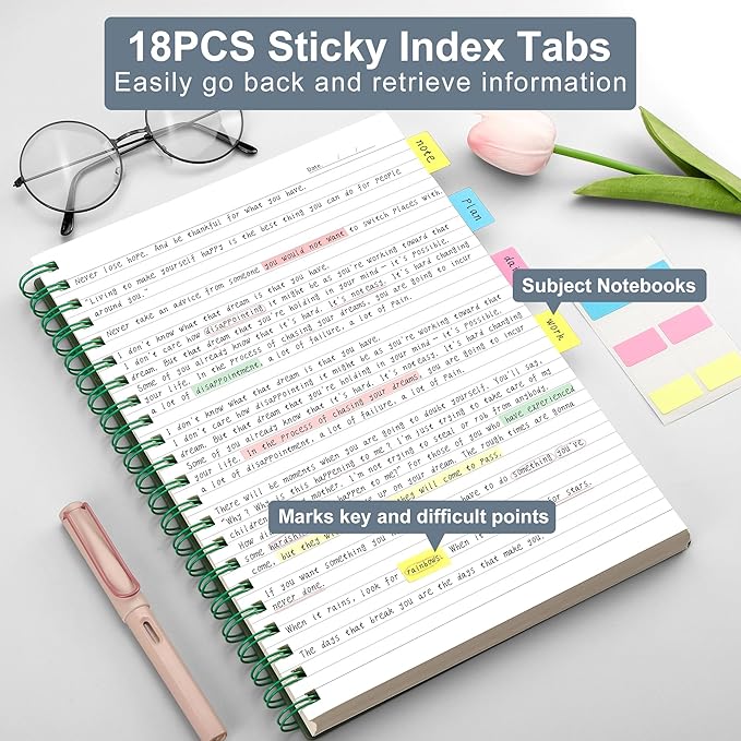 - Versatile & Organized Notebook: 7 mm college-ruled paper and comes with a free divider sticky note. This allows for easy organization of notes, making it effortless to categorize your notes, perfect for students and professionals who need to keep different subjects or projects in one place. The tear-out feature streamlines note-taking, letting you easily reorganize, share, and correct notes