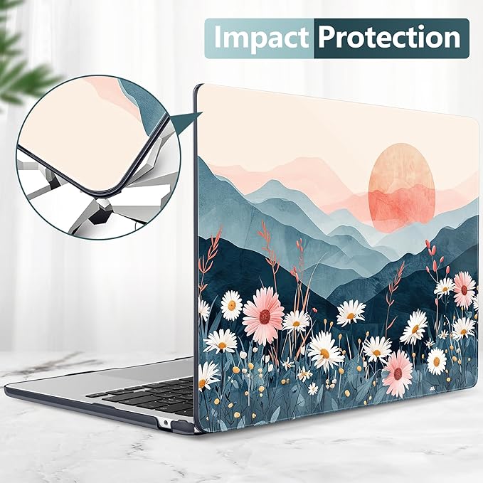 DONGKE Compatible with M4 MacBook Air 15 inch Case 2025 2024 2023 A3241 A3114 A2941 M3 M2 Liquid Retina Display Touch ID, Plastic Hard Case & Keyboard Skin & Screen Protector - Sun & Daisie