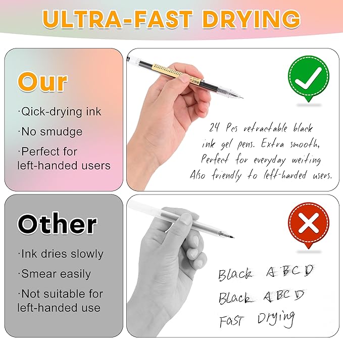 - Fine Writing Experience:This set of 12 bulk, 0.35 mm thin lined black gel pens with ultra fine point pen offers smooth writing, similar to premium rollerball pens. Ideal for bullet journaling, art projects, and office/school note taking, great for calligraphy lovers and journaling enthusiasts, ensuring neat lines.