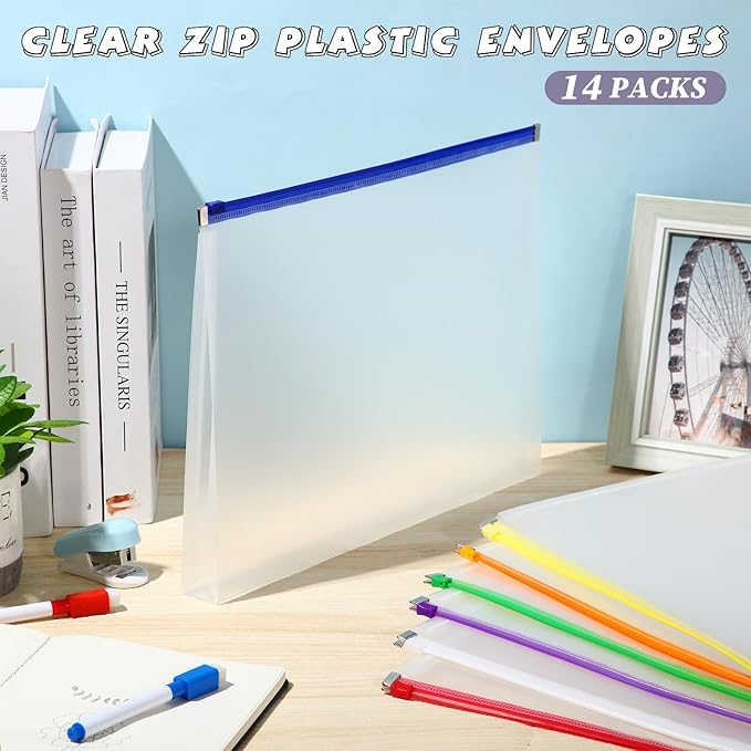 - Quality Pp Material: plastic envelopes with zipper are made of quality PP material, sturdy, tear resistant and waterproof, keeping clean, sealed with quality zip, lightweight and long lasting, and the easy slide zipper keeps your file paper safe, 7 colors zipper for easy assortments