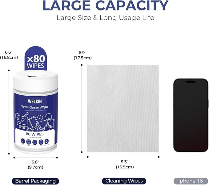 WELKIN 80 Electronics Cleaning Wipes - Non Toxic Screen Cleaner, Streak Free Touchscreen Cleaning for All Phones, Laptop, Computer, TV and Car,1 X Microfiber Cloth Included