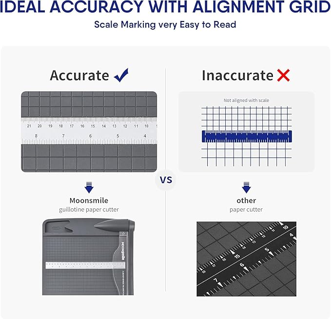 - Accuracy: A masterpiece of design with great cutting capacity; fadeless gridlines and rulers are precisely printed with dual scale (in cm and inch) for reliable alignment and perfect trimming; a sturdy 12" x 9" base and six anti-slip rubber feet ensure stable cutting on flat and hard platforms
