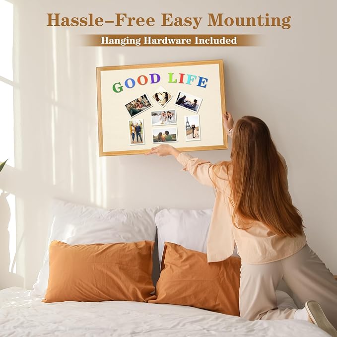 - Sturdy & Elegant Frame -- Our bulletin board comes with solid wooden frame, durable and good looking. No worry about warp or distortion. The elegant frame adds a smooth touch, enhancing your experience. With a clean and contemporary design, our memo board can fit your office and home decor well.