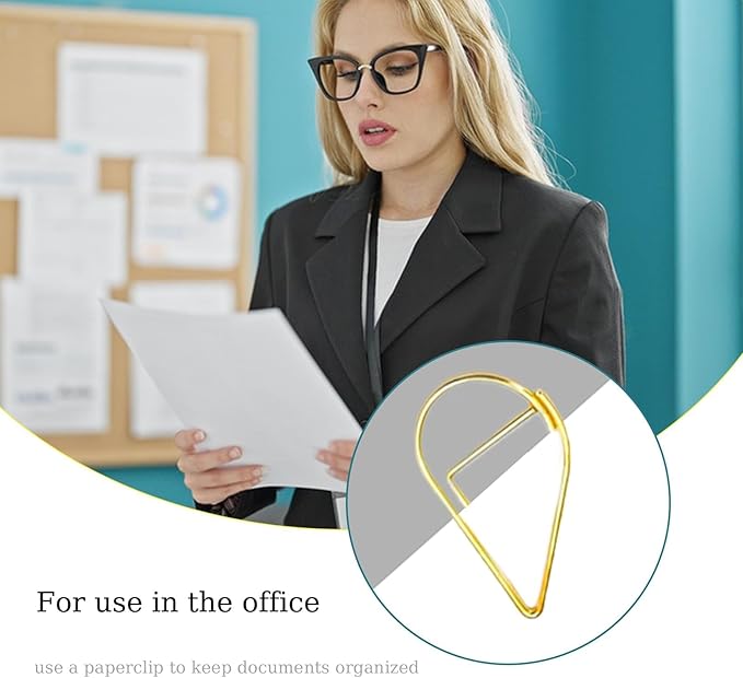 - [High Quality] The water drop-shaped paperclip is rust-resistant and durable in gold color, made of metal material with exquisite craftsmanship and corrosion resistance. It is compact and convenient, and the surface of the office paperclip is smooth with rounded corners, ensuring long-term use.