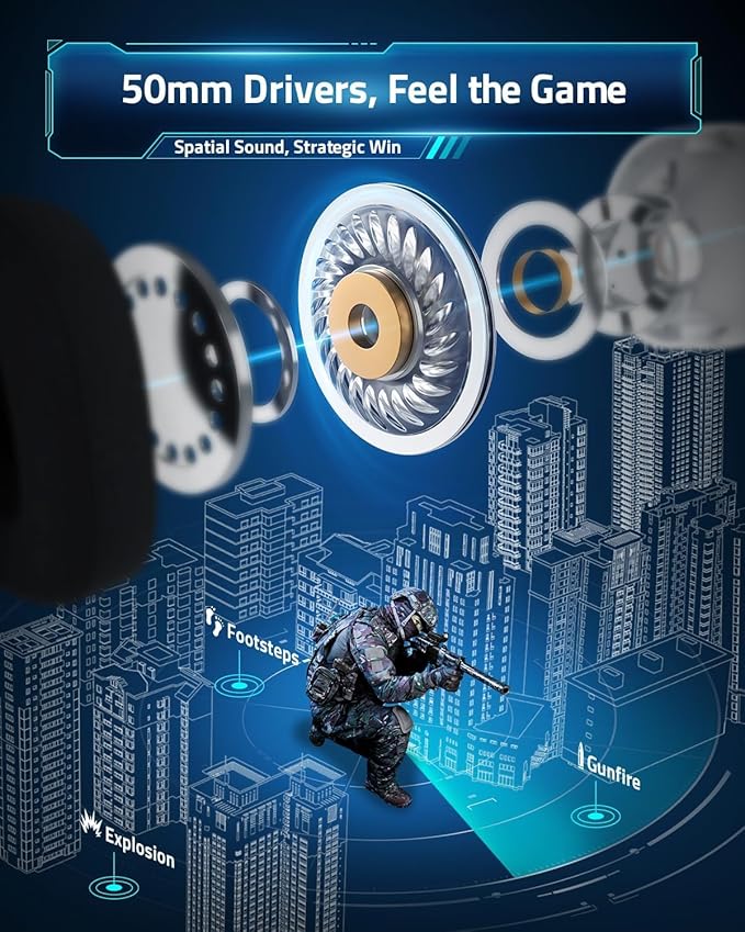 - ใ๐๐ข๐ซ๐๐ฅ๐๐ฌ๐ฌ ๐ ๐ซ๐๐๐๐จ๐ฆ, ๐๐ฆ๐ฆ๐๐ซ๐ฌ๐ข๐ฏ๐ ๐๐ซ๐๐๐ข๐ฌ๐ข๐จ๐งใUnleash the full potential of gaming with our 2.4GHz ultra-low latency wireless gaming headset, offering up to 49 feet of unrestricted movement in unobstructed spaces with imperceptible latency (โค20ms) for a smoother gaming experience. Combined with a 50mm dynamic coil driver, allowing you to clearly perceive directional sounds, footsteps, and every detail in the game for an immersive gaming world