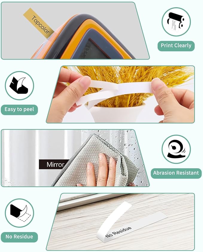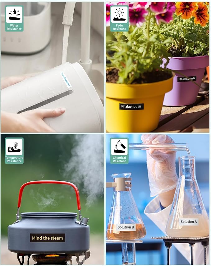 - Features: (1) Split-backing, making the 12mm label maker tape easy to peel and apply. (2) The tz 12mm 0.47" laminated tape is adhesion, resistant, temperature resistant, water resistant, chemical resistant, fade resistant, UV resistant, abrasion resistant, grease resistant, grime resistant, and corrosion resistant