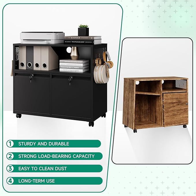 - 『Easy to move』4 removable wheels- printer stand can be moved and adjusted in position freely,2 wheels lockable to keep cabinet stable;Drawer with lock ensure the safety of items.