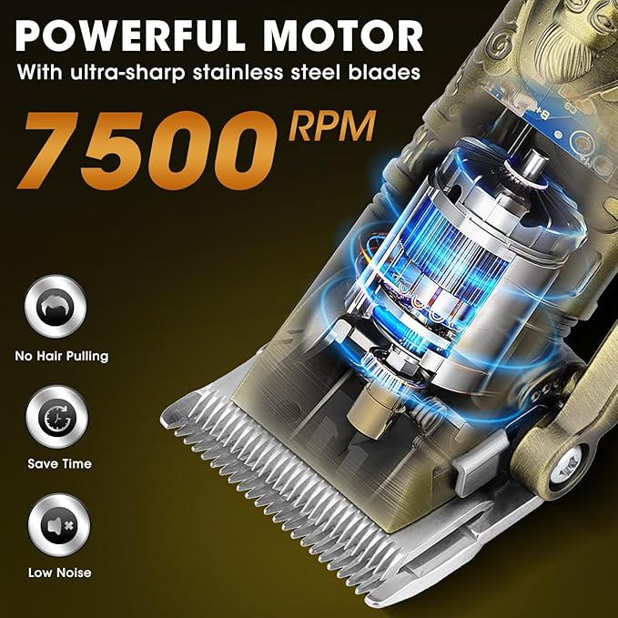 - Powerful Motor &Sharp Stainless Blades: RESUXI hair clippers and trimmers set are powerful and quiet at up to 7500 rpm, with sharp stainless steel blades for one-off trimming without pulling hair. They will not burn your skin due to heat generation when in use, providing you with efficient and convenient haircutting services.