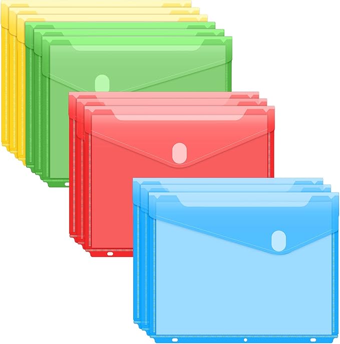 - Easy Classify & Look Up: 4 Assorted colors, blue, green, yellow and red, three for each color. It is easier to distinguish different types of files with different colors. Meanwhile, translucent design allow you to find the documents easily without removing them from the envelope pocket.