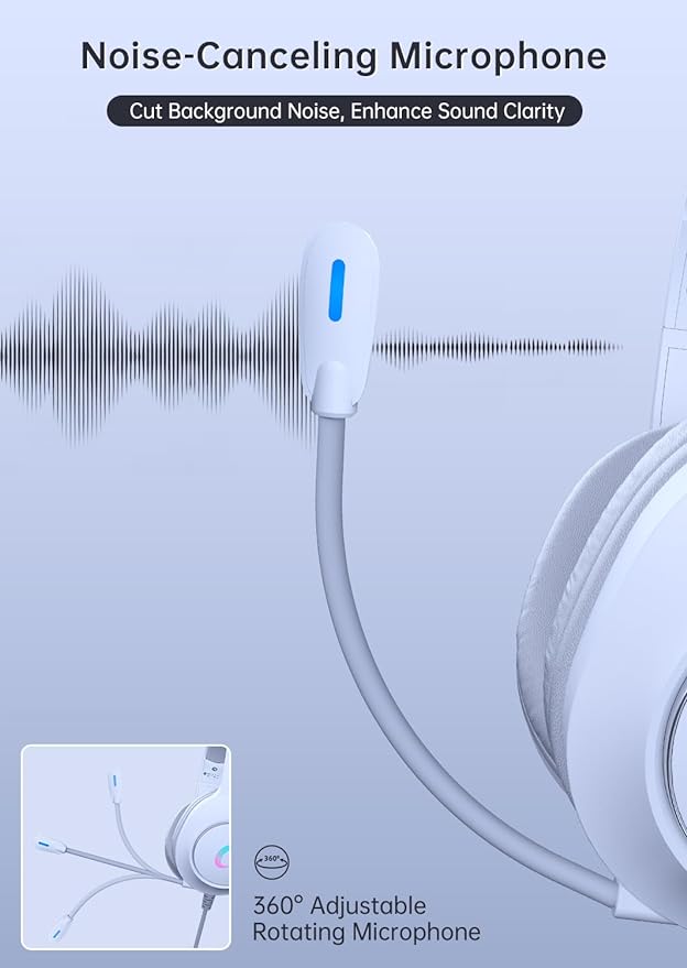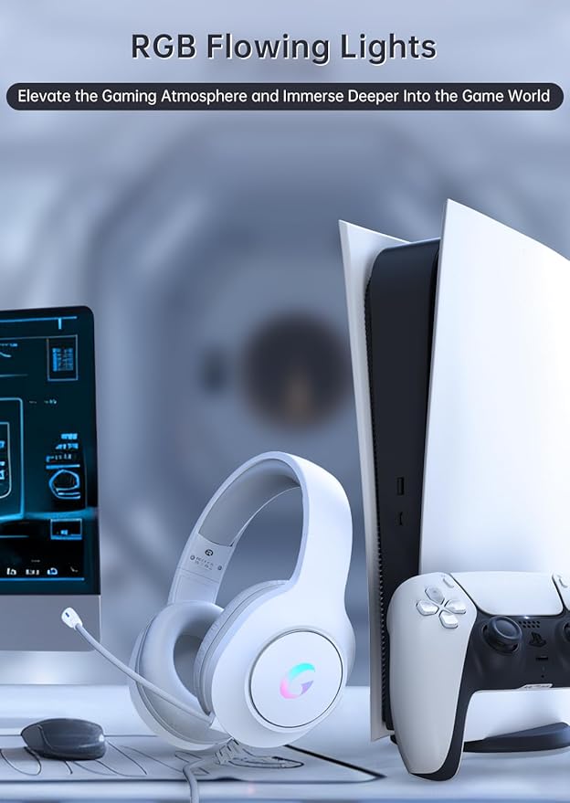 CM7002 Gaming Headset for PS5, PS4, PC, Mac, Switch, Xbox Series, Surround Sound RGB Gaming Headphones with Noise Canceling Microphone, 50MM Dynamic Drivers, 3.5MM Audio Jack, Light White