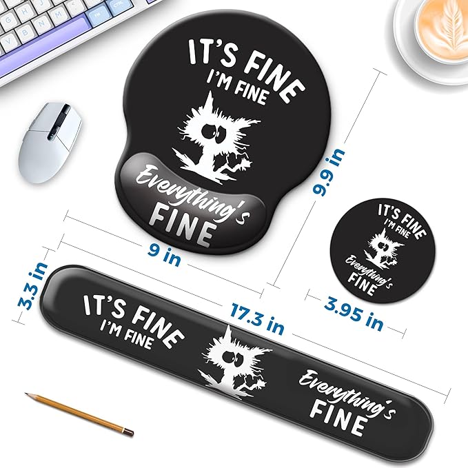 - Larger:Wrist mouse pad (9 x 9.9 inch) 20% larger than usual to ensure slide more conveniently , keyboard wrist rest ( 17.7 x3.5 inch), coaster (3.95x3.95 inch).