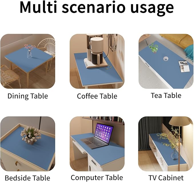 - Safe Material:The Table Cover Protector is made of faux leather(Non genuine leather)material,Non toxic odorless.The opacity of the product can effectively conceal flaws on the surface of furniture and tabletops.The product has a thickness of 1.8mm, with a soft and durable texture that can effectively cushion the collision between tableware and tabletop.it shields furniture from scratches, scuffs, stains, spills, and damage.